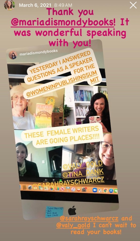 In 2021, I attended my first writing conference. It was 2021, so it was virtual. I had the opportunity to meet Sarah Schwarcz. We ended up in a small breakout session with publisher, Maria Dismondy, and future author friend, Valerie Goldstein.